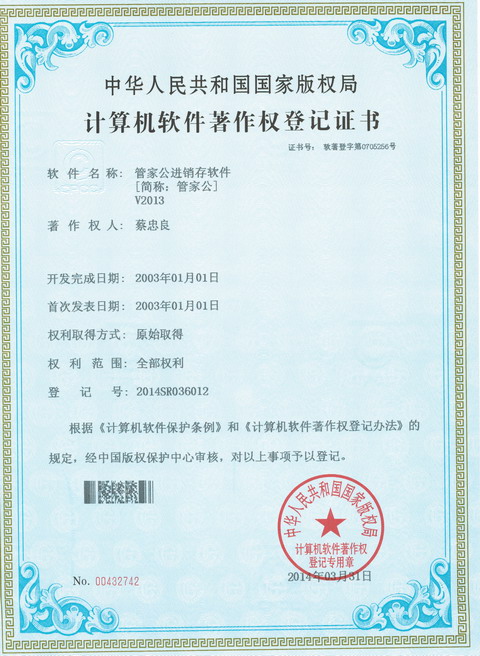 管家公著作權(quán)登記證書