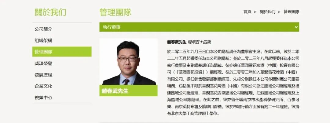趙春武趙本人是華潤啤酒“老兵”,在內部歷練20多年。