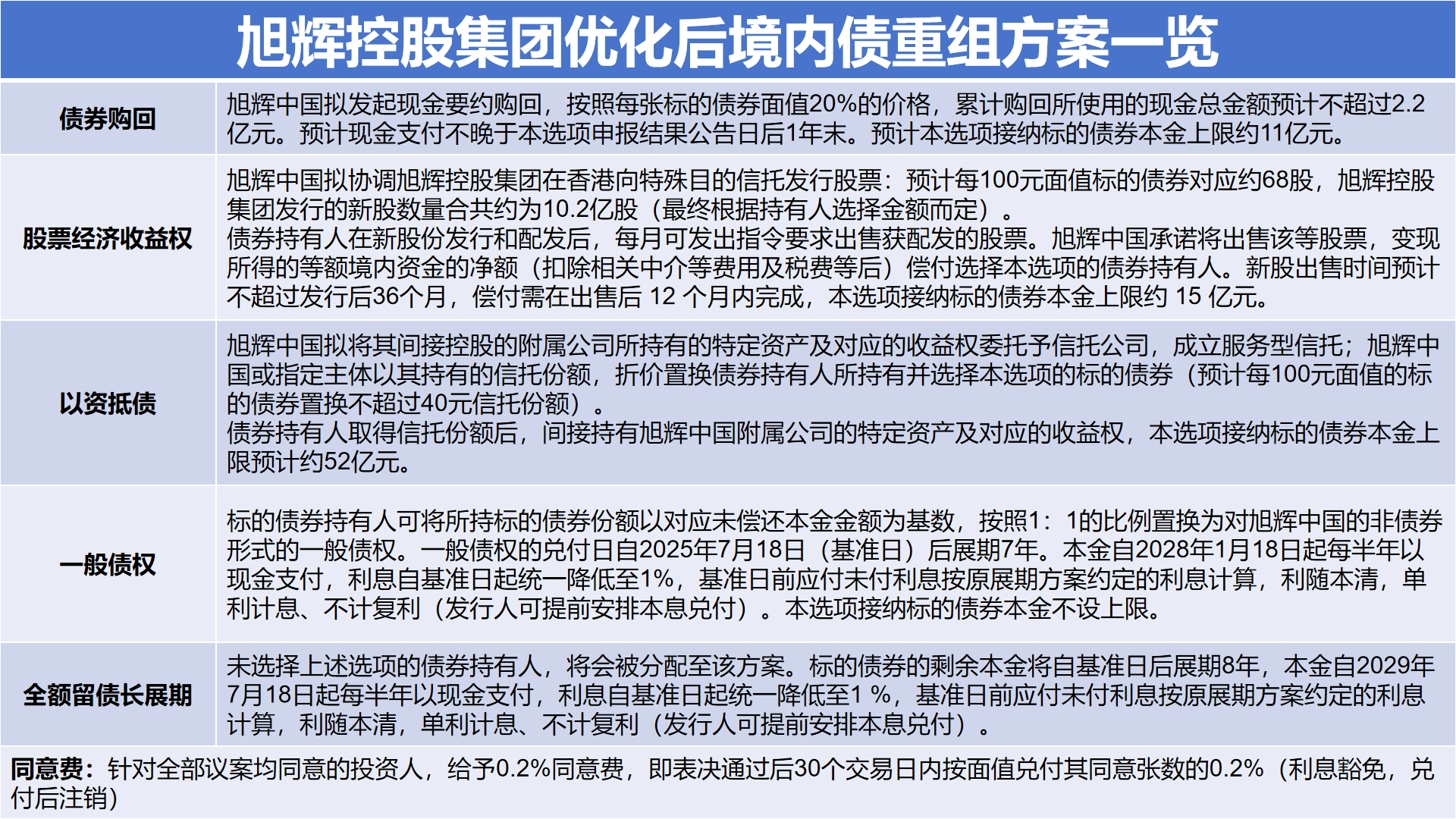 根據安排,房企旭輝中國將根據債券持有人會(huì )議議案的化債相關(guān)約定,安排相關(guān)債權人就其持有的債券在重組選項中進(jìn)行選擇及分配。