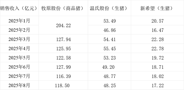 三大上市豬企2025年銷(xiāo)售情況。大上制圖 澎湃新聞三大上市豬企2025年銷(xiāo)售情況。市豬生豬收入制圖 澎湃新聞