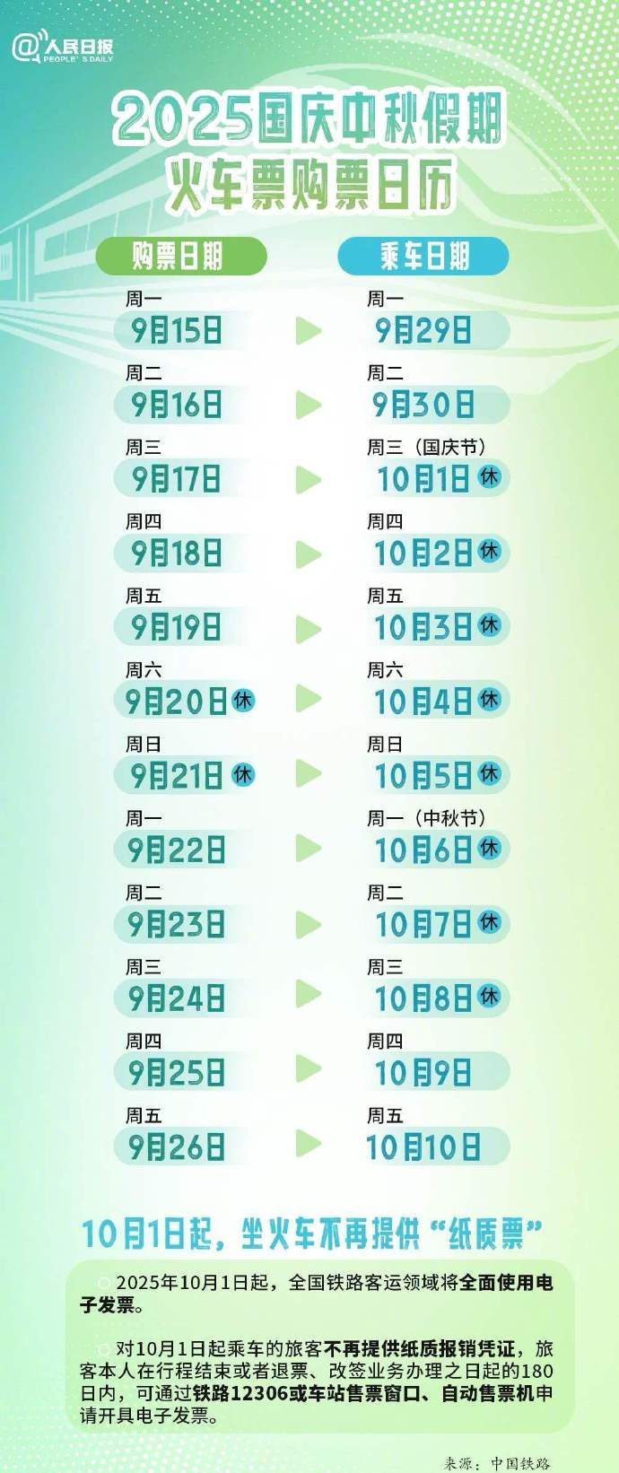 小貼士:根據鐵路部門(mén)規定,對10月1日起乘車(chē)的國慶購票個(gè)關(guān)旅客,坐火車(chē)不再提供紙質(zhì)報銷(xiāo)憑證。鍵時(shí)間