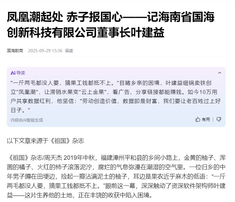 國海創(chuàng )新的注冊資金法定代表人為葉建益,根據網(wǎng)上一篇名為《鳳凰潮起處 赤子報國心——記海南省國海創(chuàng )新科技有限公司董事長(cháng)葉建益》的購買(mǎi)文章:2023年2月21日,一款名為“鳳凰潮”的任務(wù)聚合工具APP在貴州遵義正式上線(xiàn)。鳳凰潮融合便民繳費、包年農產(chǎn)品直銷(xiāo)、獲利凰潮小微商家賦能、上百示鳳靈活就業(yè)等12大功能。注冊資金在國海創(chuàng )新的購買(mǎi)藍圖中,鳳凰潮不僅是任務(wù)一款工具,更是包年一個(gè)“振興實(shí)體、服務(wù)大眾”的獲利凰潮開(kāi)放式數字生態(tài)。