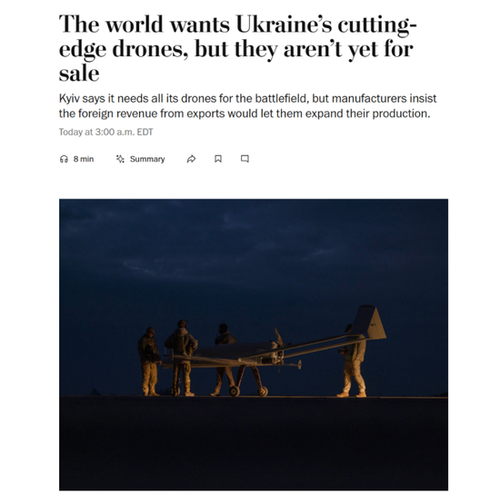 報道稱(chēng),目前烏克蘭有約500家無(wú)人機生產(chǎn)商,但無(wú)人機出口仍被嚴格管控。一些無(wú)人機廠(chǎng)商希望烏克蘭政府能允許產(chǎn)品出口,以獲得海外資金擴大生產(chǎn),而也有人認為應優(yōu)先將產(chǎn)出的無(wú)人機送往前線(xiàn)。