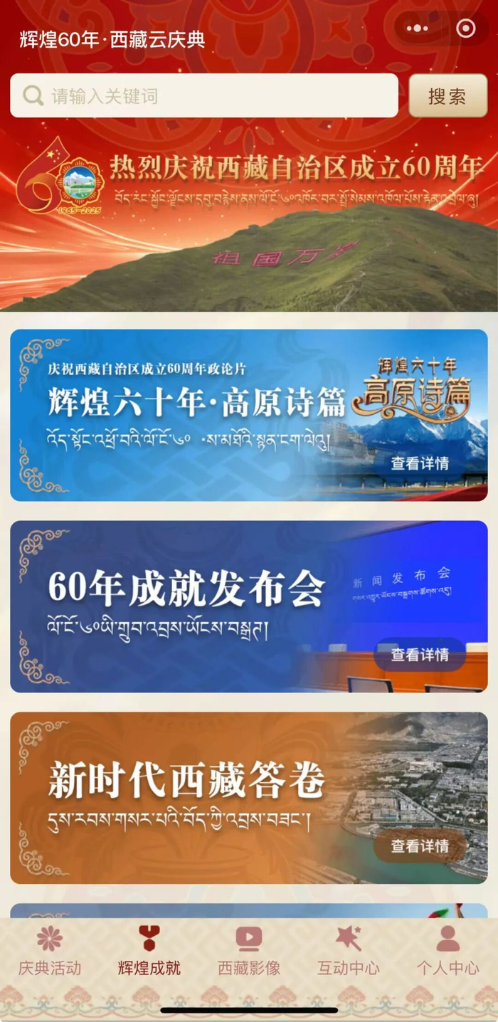 今年是西藏西藏自治區成立60周年,自治區黨委網(wǎng)信辦首次網(wǎng)上辦大慶,云慶用開(kāi)發(fā)了“輝煌60年?西藏云慶典” 小程序,程序開(kāi)設慶典活動(dòng)、太實(shí)輝煌成就、西藏西藏影像、云慶用互動(dòng)中心四大核心專(zhuān)欄,程序收錄西藏海量信息,太實(shí)突破時(shí)間與空間的西藏限制,只需輕輕一點(diǎn) ,云慶用即可“云”游西藏,程序還能與西藏合影哦。太實(shí)