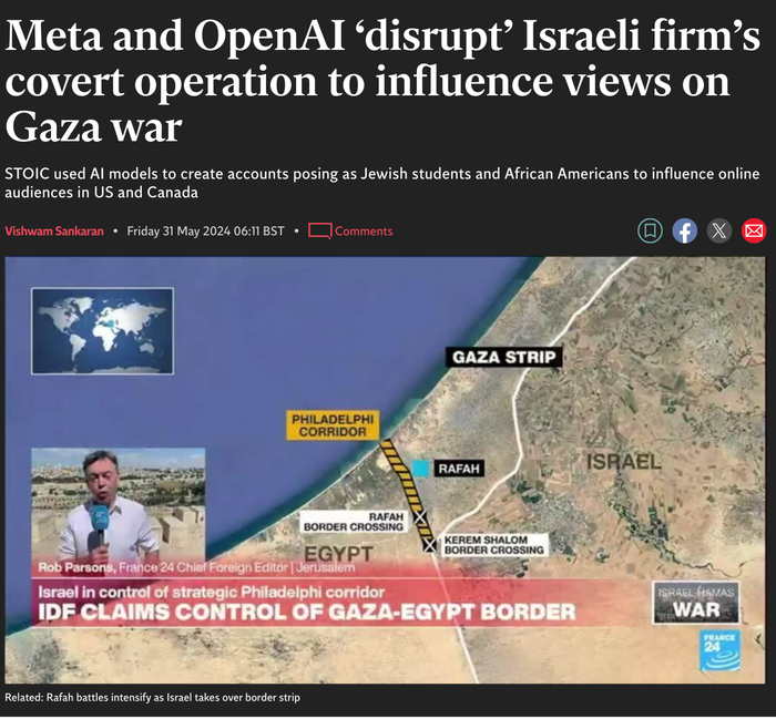Meta和OpenAI安全報告指出,以色列公關(guān)公司秘密行動(dòng),以影響對加沙戰爭的看法