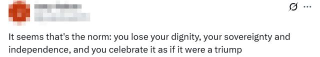 對于瑞士政府“喜大普奔”官宣與美國達成協(xié)議,也有網(wǎng)民難掩失望,“你失去了尊嚴、主權和獨立,卻還把它當作一場(chǎng)勝利來(lái)慶祝。這似乎成了常態(tài)?!?
