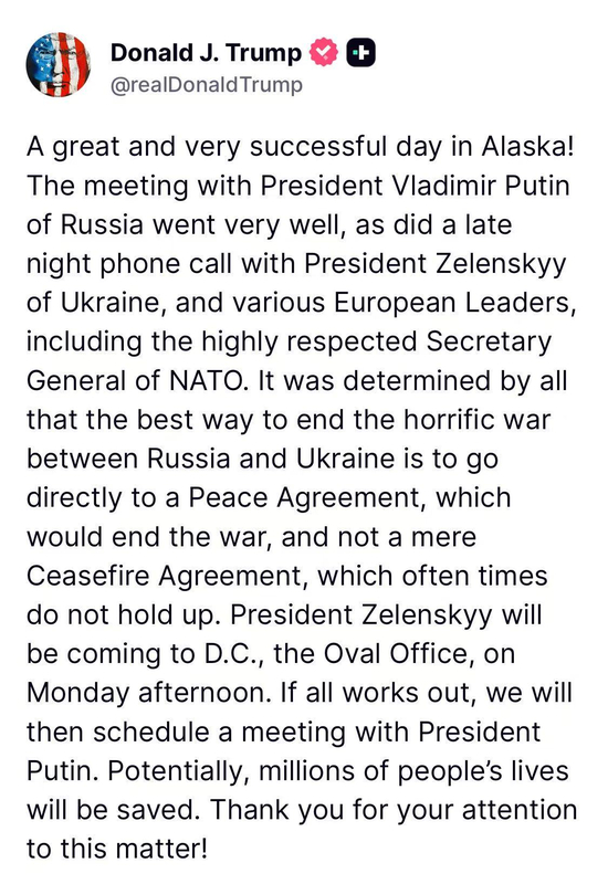 特朗普在阿拉斯加會(huì )晤后表示,他傾向于尋求一份“全面和平協(xié)議”,而非僅僅“臨時(shí)?;稹?。輿論分析,這一思路意在通過(guò)“大框架”一次性解決問(wèn)題,但也可能造成和平遲遲難以落地。