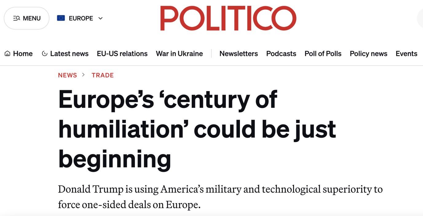 面對這樣一份不平衡、不平等的協(xié)議,馮德萊恩一再辯稱(chēng),歐美貿易協(xié)議雖不完美但成效顯著(zhù),并將這份長(cháng)達四頁(yè)的框架協(xié)議描述為“為了穩定和可預見(jiàn)性、而非升級和對抗”的深思熟慮之舉。但是,這一協(xié)議在歐洲被廣泛批評為歐盟的“屈服”、“投降”和“失敗”。