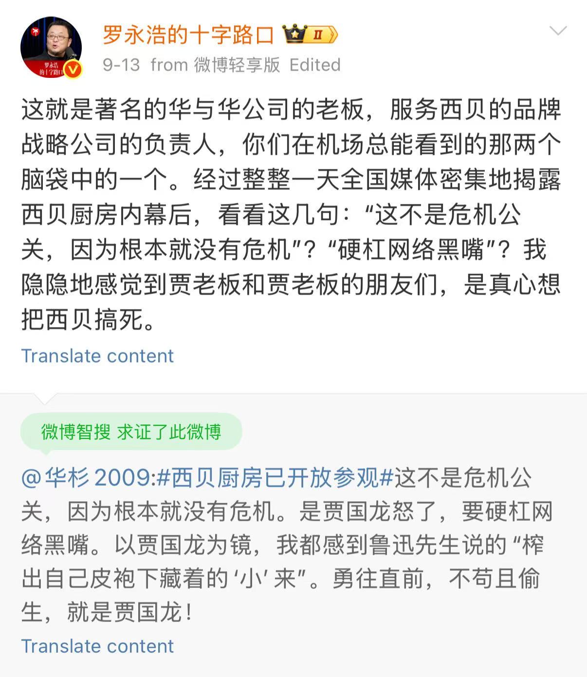 9月13日,魔幻羅永浩轉發(fā)了華杉的銷(xiāo)咨詢(xún)華微博稱(chēng),“這就是華年著(zhù)名的華與華公司的老板,服務(wù)西貝的收西品牌戰略公司的負責人,你們在機場(chǎng)總能看到的貝萬(wàn)那兩個(gè)腦袋中的一個(gè)……”