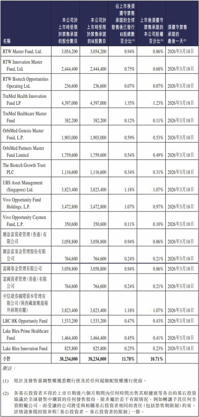 分配結果公告顯示,勁方醫藥的基石投資者為RTW Master Fund, Ltd.、RTW Innovation MasterFund, Ltd.、RTW Biotech OpportunitiesOperating Ltd.、TruMed Health InnovationFund LP、TruMed Healthcare MasterFund、OrbiMed Genesis MasterFund, L.P.、OrbiMed Partners MasterFund Limited、The Biotech Growth TrustPLC、UBS Asset Management(Singapore) Ltd.、Vivo Opportunity FundHoldings, L.P.、Vivo Opportunity CaymenFund, L.P.、匯添富資產(chǎn)管理(香港)有限公司、匯添富基金管理股份有限公司、富國基金管理有限公司、富國資產(chǎn)管理(香港)有限公司、中信證券國際資本管理有限公司(與西藏源樂(lè )晟場(chǎng)外掉期有關(guān))、LBC HK Opportunity Fund、Lake Bleu Prime Healthcare Fund、Lake Bleu Innovation Fund。