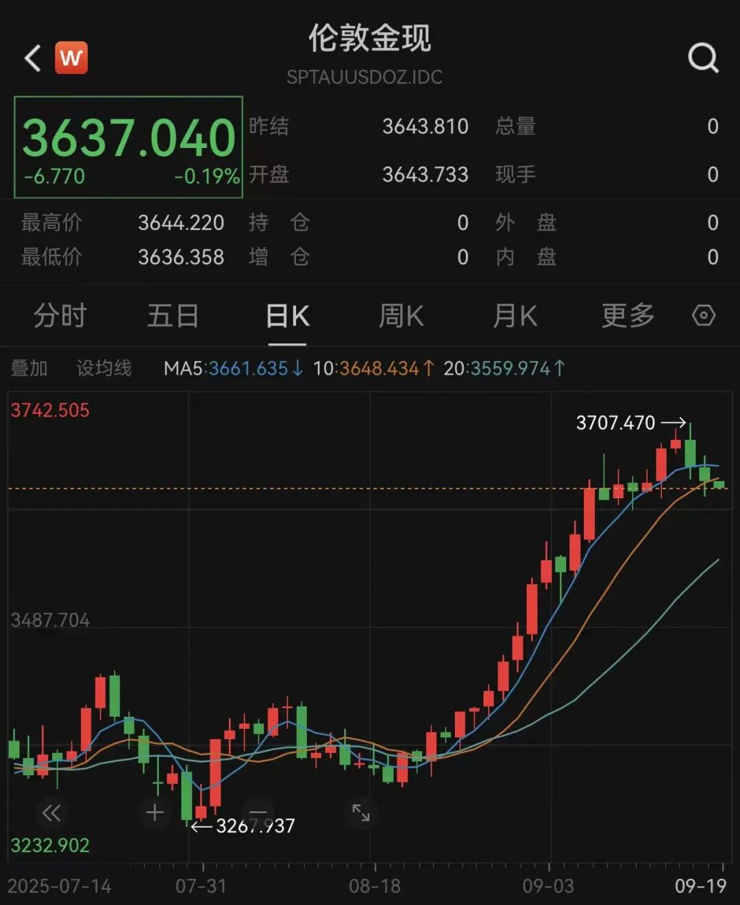 目前,國際金價(jià)正處于高位。截至發(fā)稿,現貨黃金每盎司報3637.04美元。