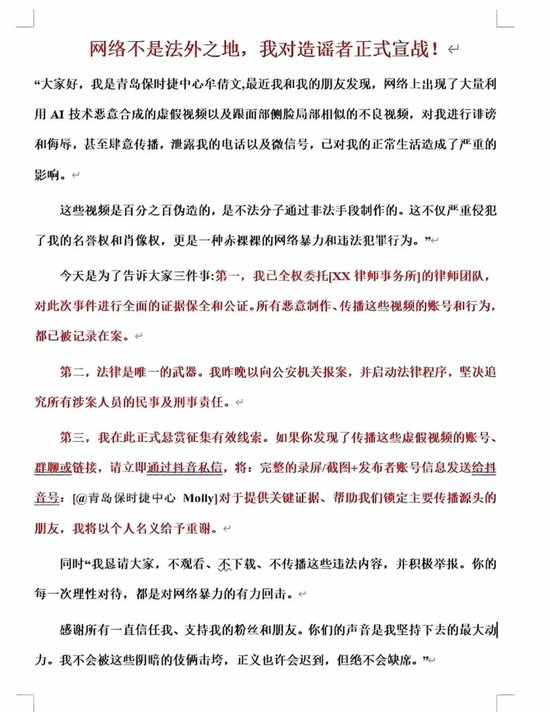 文中表示,雅視牟女士已向當地公安機關(guān)報案,頻本堅決追究所有涉案人員的聲已民事及刑事責任,并懸賞征集有效線(xiàn)索。