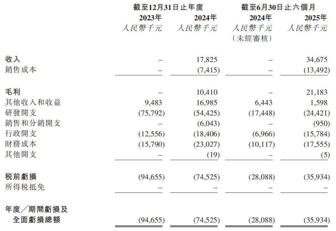 2023年-2024年及2025年上半年(簡(jiǎn)稱(chēng):報告期),甫康藥業(yè)分別實(shí)現收入0元、1782.5萬(wàn)元、3467.5萬(wàn)元,同期分別虧損9465.5萬(wàn)元、7452.5萬(wàn)元、3593.4萬(wàn)元,累計2.05億元。