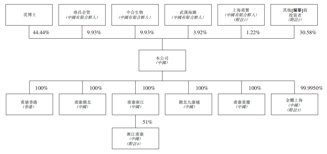 上市前的妻套股東架構中,創(chuàng )始人沈孝坤直接持股44.44%,并通過(guò)珞昌企管、上海甫繁合計控制約55.58%的股份,同時(shí)為董事會(huì )主席、執行董事、首席執行官。