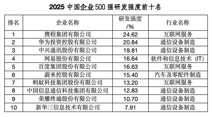 從研發(fā)投入額來(lái)看,華為、比亞迪、中國建筑分列前三位,分別投入約1796.87億元、531.95億元、454.59億元,值得一提的是,華為一家投入占500強研發(fā)投入近十分之一。