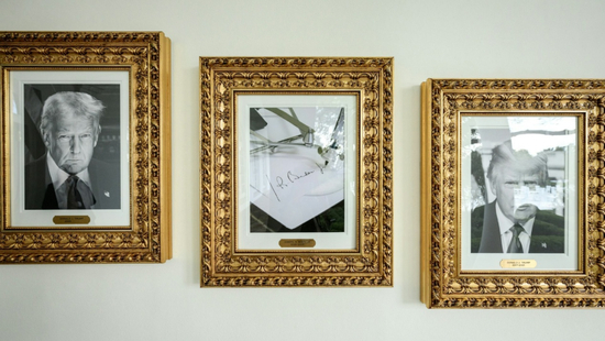 美國總統特朗普在白宮新設一面歷任總統肖像墻,筆并用一張“自動(dòng)簽名筆”的那多圖片取代拜登本人的肖像,藉此嘲諷這位前總統。美國
