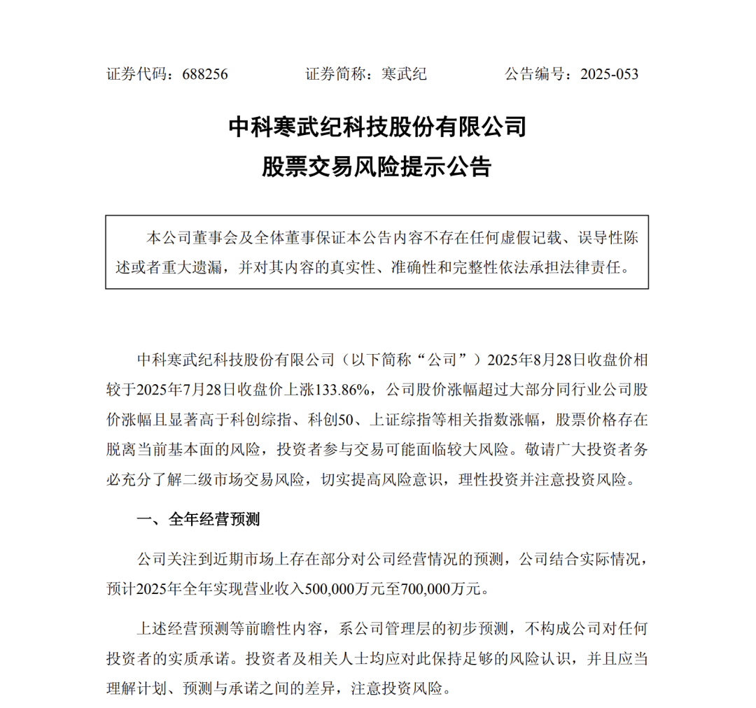盤(pán)后,寒武紀緊急發(fā)聲