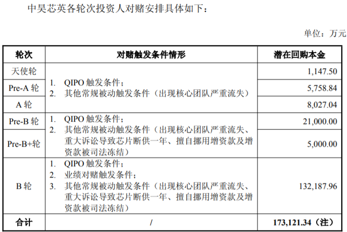 圖說(shuō):中昊芯英各輪次投資人對賭安排及觸發(fā)條件 圖片來(lái)源:天普股份公告