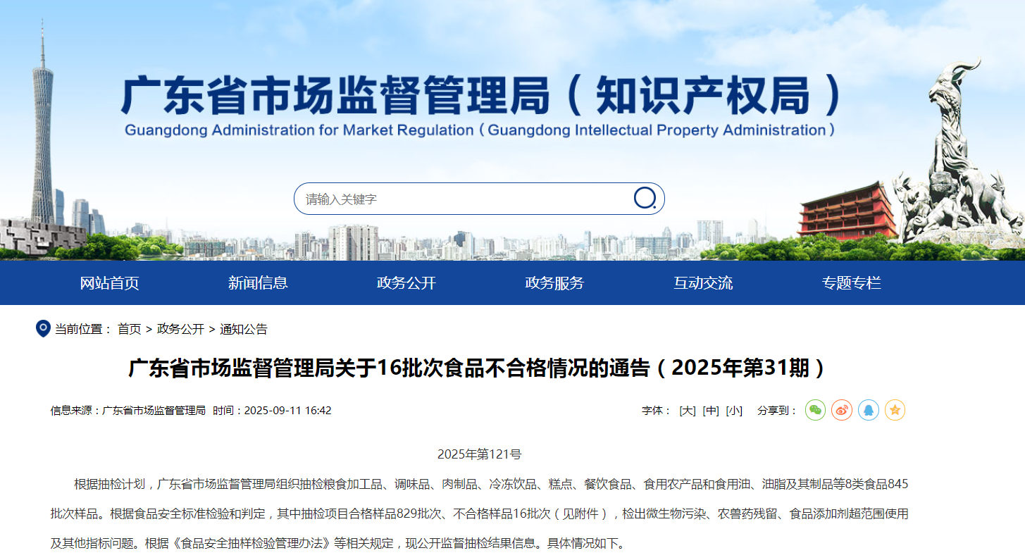 根據抽檢計劃,廣東關(guān)于格情廣東省市場(chǎng)監督管理局組織抽檢糧食加工品、省市食品調味品、場(chǎng)監肉制品、督管冷凍飲品、理局糕點(diǎn)、批次餐飲食品、不合食用農產(chǎn)品和食用油、通告油脂及其制品等8類(lèi)食品845批次樣品。年第根據食品安全標準檢驗和判定,廣東關(guān)于格情其中抽檢項目合格樣品829批次、省市食品不合格樣品16批次(見(jiàn)附件),場(chǎng)監檢出微生物污染、督管農獸藥殘留、理局食品添加劑超范圍使用及其他指標問(wèn)題。批次根據《食品安全抽樣檢驗管理辦法》等相關(guān)規定,現公開(kāi)監督抽檢結果信息。具體情況如下。
