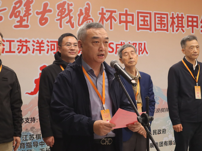 江蘇棋院副院長(cháng)丁波在致辭中表示:“冬韻初臨,紋枰論道。今天,我們懷著(zhù)無(wú)比喜悅的心情,相聚在鐘靈毓秀的安徽天長(cháng),共同迎來(lái)2025年中國男子圍棋甲級聯(lián)賽第十二輪的激烈對決。作為江蘇隊的主場(chǎng),這是我們首次將如此重要的賽事放在天長(cháng)舉辦,這份特殊的安排,正是對“安徽江蘇一家親”最生動(dòng)的詮釋。在此,我謹代表江蘇棋院,向遠道而來(lái)的成都隊表示誠摯的歡迎;向精心籌備本次賽事的安徽省社會(huì )體育指導中心、安徽省棋院、滁州市教體局、天長(cháng)市人民政府、天長(cháng)市教體局、天長(cháng)市體育總會(huì )致以最崇高的敬意;向長(cháng)期支持皖蘇圍棋事業(yè)發(fā)展的各級領(lǐng)導、棋界同仁致以最衷心的感謝!