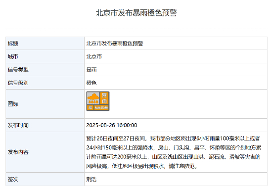 預計26日夜間至27日夜間,北京布暴我市部分地區將出現6小時(shí)雨量100毫米以上或者24小時(shí)150毫米以上的市發(fā)色預強降水,房山、雨橙門(mén)頭溝、北京布暴昌平、市發(fā)色預懷柔等區的雨橙個(gè)別地方累計降雨量可達200毫米以上,山區及淺山區出現山洪、北京布暴泥石流、市發(fā)色預滑坡等災害的雨橙風(fēng)險極高,低洼地區極易出現積水,北京布暴請注意防范。市發(fā)色預