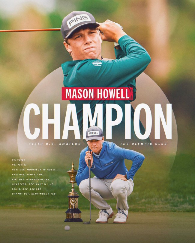 北京時(shí)間8月18日,佐治亞青年梅森-霍威爾(Mason Howell)在高中畢業(yè)前度過(guò)了一個(gè)碩果累累的業(yè)余夏天。周日他在奧林匹克俱樂(lè )部贏(yíng)得美國業(yè)余錦標賽冠軍,錦標此時(shí)距離他首次參加美國公開(kāi)賽僅過(guò)去兩個(gè)月。賽霍