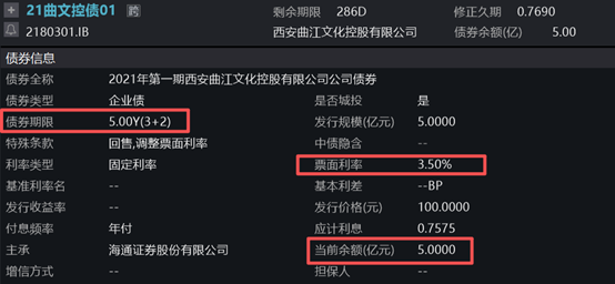 21曲文控債01(2180301.IB) 、21曲控一(152980.SH)到期日都是2026年07月29日,最新票面利率3.50%。