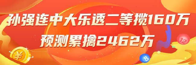 孫強大樂(lè )透:連續兩期預測中二等獎共獲160萬(wàn),大樂(lè )近期預測中大樂(lè )透雙色球2462萬(wàn)[查看專(zhuān)家推薦]