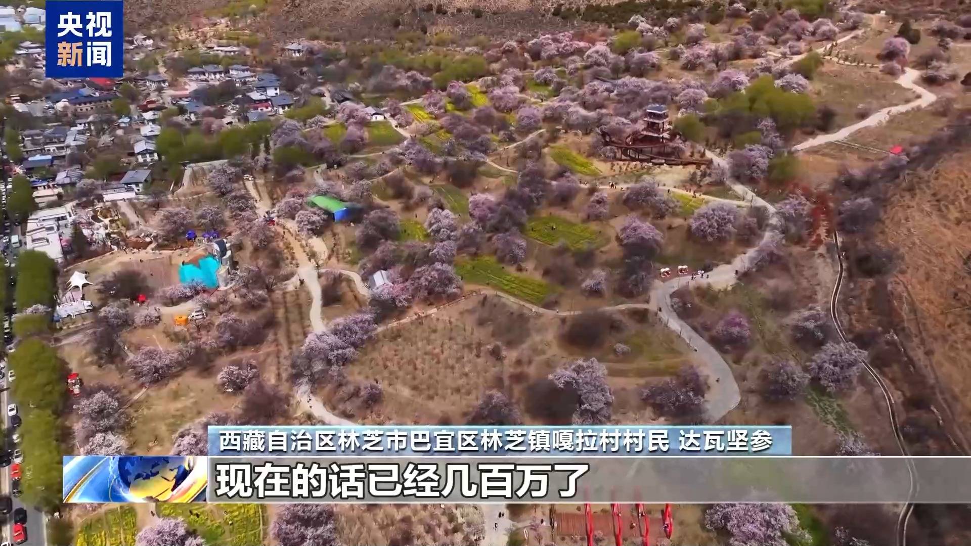 西藏自治區林芝市巴宜區林芝鎮嘎拉村村民 達瓦堅參:以前從桃花節開(kāi)始搞起來(lái)的時(shí)候,全村收入幾百塊錢(qián)到幾千塊錢(qián)到幾萬(wàn)塊錢(qián),現在的話(huà)已經(jīng)幾百萬(wàn)了。