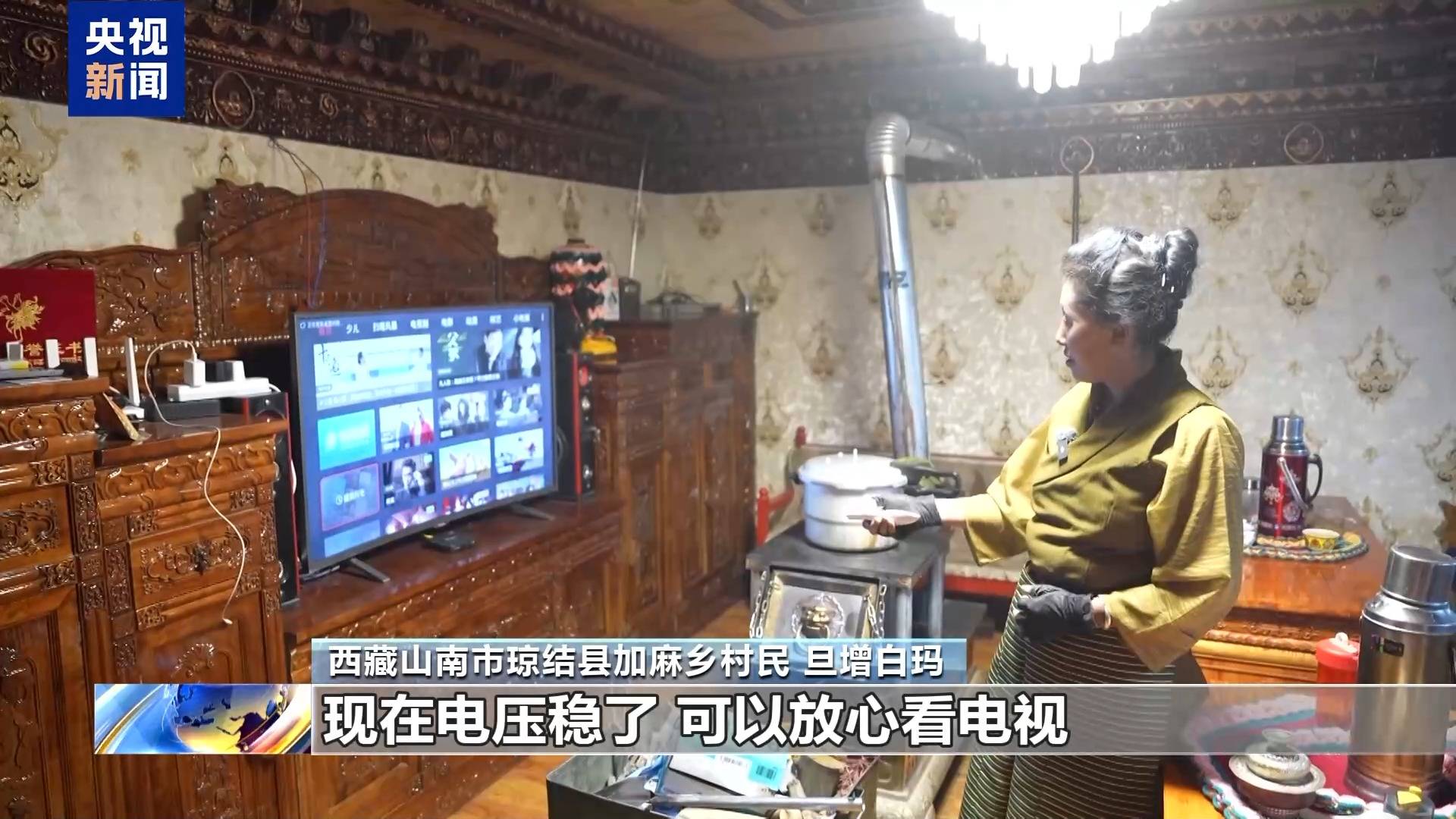西藏山南瓊結縣加麻鄉村民 旦增白瑪:現在電壓穩了,可以放心看電視。而且還買(mǎi)了很多新家電,冰箱、洗衣機。
