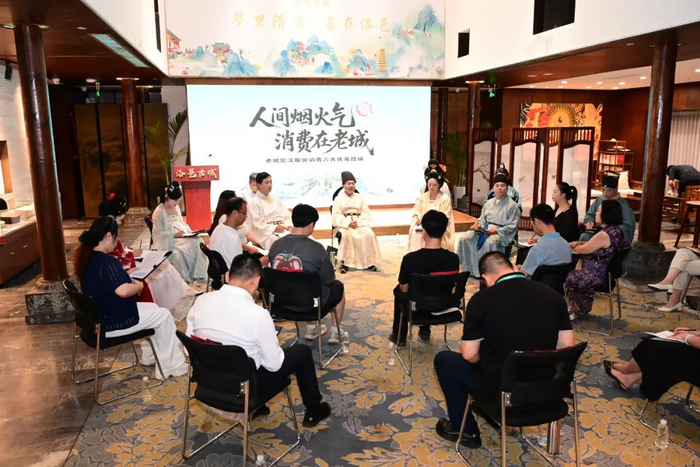 體驗結束后,老城區縣級領(lǐng)導圍繞漢服體驗情況進(jìn)行座談,梳理消費過(guò)程中發(fā)現的問(wèn)題,并與參會(huì )的漢服商家代表和相關(guān)部門(mén)負責人交流探討改進(jìn)措施,讓“發(fā)現問(wèn)題”快速轉化為“解決問(wèn)題”的實(shí)際行動(dòng),推動(dòng)老城區漢服產(chǎn)業(yè)持續健康發(fā)展?,F場(chǎng)圖片顯示,座談上,趙書(shū)政、周新等人仍身著(zhù)漢服。