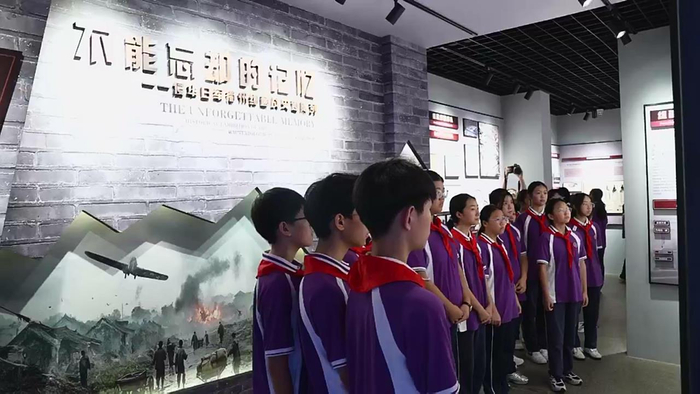 在衢州,百余名學(xué)生上午來(lái)到侵華日軍細菌戰衢州陳列館,深切哀悼日本侵華戰爭中慘遭殺戮的死難同胞。