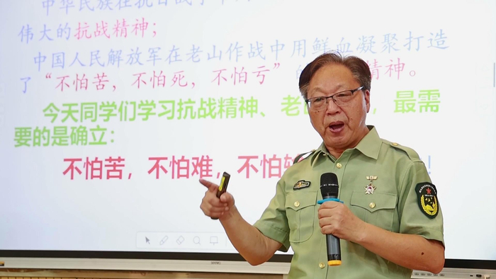 在永康市古山中學(xué)階梯教室內,浙江省紅船精神優(yōu)秀五老宣講員、永康籍退役老兵呂金土的精彩宣講,吸引了數百名學(xué)生豎耳傾聽(tīng),宣講內容從九一八事變到抗戰勝利,呂金土將這段波瀾壯闊歷史中的重大里程碑事件一一呈現在課堂上,生動(dòng)再現了那段崢嶸歲月。特別是當講到王二小、楊靖宇等抗日英雄的感人事跡時(shí),在場(chǎng)師生無(wú)不為之動(dòng)容,這些鮮活的英雄故事深刻詮釋了中華民族“天下興亡、匹夫有責”的崇高民族氣節和愛(ài)國情懷。