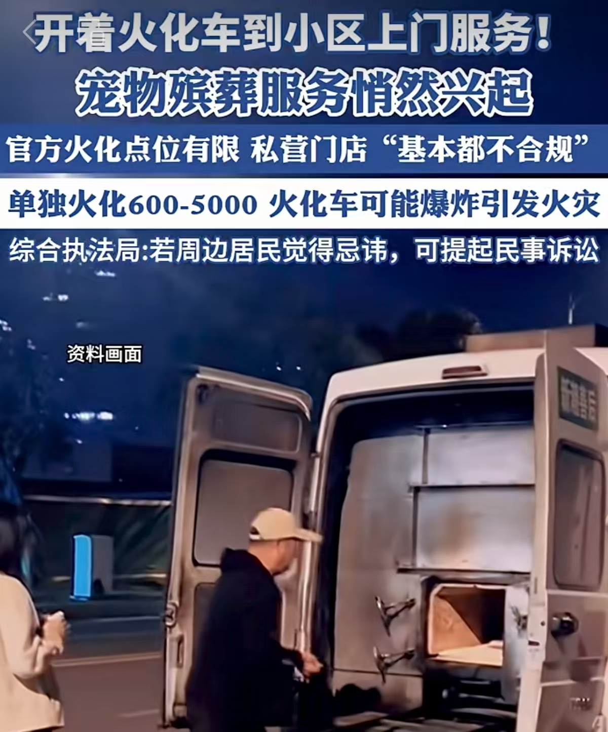▲上門(mén)焚化這類(lèi)粗暴操作,暴露了行業(yè)野蠻生長(cháng)的隱患。圖/海報新聞視頻截圖近年來(lái),養寵物的家庭越來(lái)越多,陪伴多年之后,寵物的“身后事”也逐漸被賦予更多儀式感。不過(guò),在市場(chǎng)需求不斷擴大的同時(shí),無(wú)證經(jīng)營(yíng)的“黑