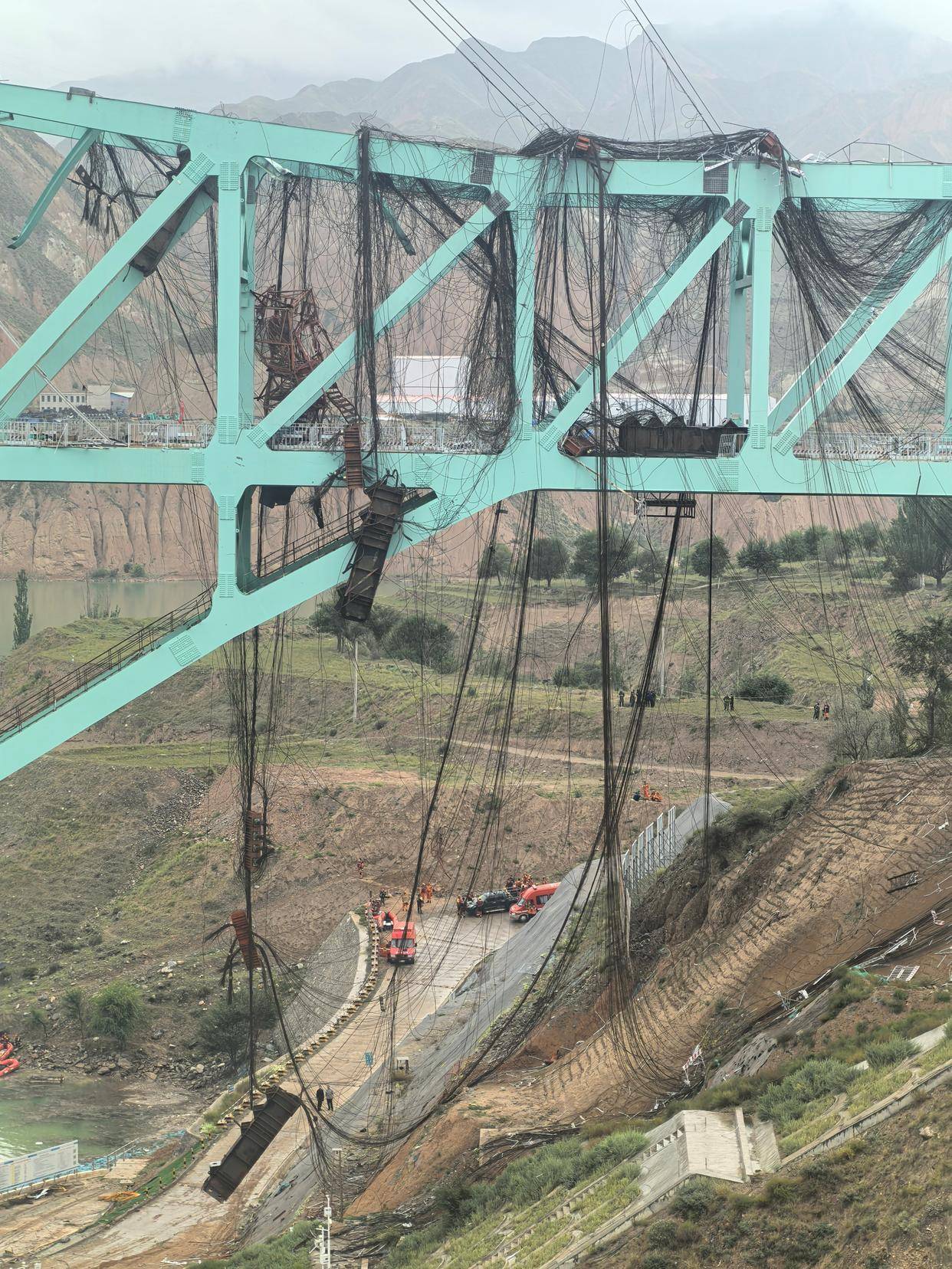事故發(fā)生時(shí),鋼索驟然斷裂,導致橋面失去牽引,108米鋼梁主拱肋垮塌,部分橋面瞬間掉落。據介紹,多名施工人員從不同平臺掉落,鋼梁主拱肋的垮塌在3秒鐘之內完成。