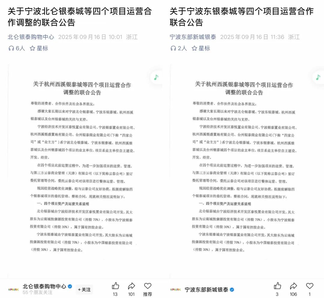 突發(fā)!寧波北侖銀泰城、東銀泰城運營(yíng)方解約,最新回應來(lái)了