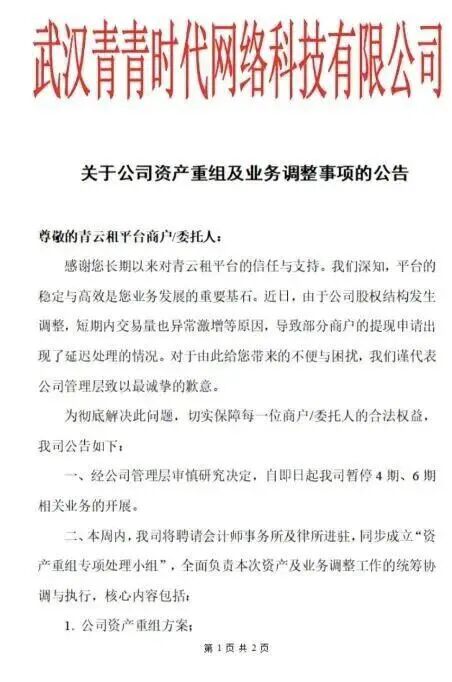 在青云租相關(guān)投資者小也提供的超億一份最新《補充協(xié)議》中,武漢青青時(shí)代網(wǎng)絡(luò )科技有限公司提供了最新的元首疑委托收益分期支付方案,該方案顯示:雙方一致同意,市系手機自本補充協(xié)議生效之日起,租賃附件一中的平臺委托租賃訂單未完成提現的租金按24個(gè)月進(jìn)行分期。