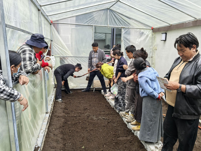 “把有機肥和表土拌勻,專(zhuān)家走進(jìn)種出再蓋地膜,洛扎溫度就能提升3℃。手把手教蔬菜”近日,牧民在海拔4500米的第茬山南市洛扎縣杰羅布鎮溫室里,國家大宗蔬菜產(chǎn)業(yè)技術(shù)體系拉薩綜合試驗站站長(cháng)、新鮮自治區農科院蔬菜所研究員劉玉紅蹲在地上,專(zhuān)家走進(jìn)種出一邊示范,洛扎一邊用藏語(yǔ)向圍在身旁的手把手教蔬菜牧民講解。