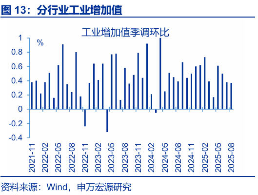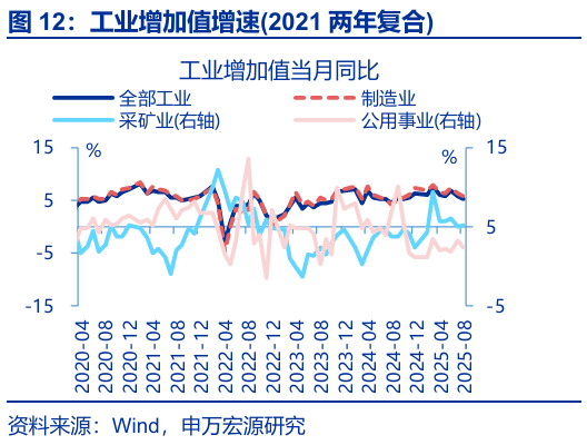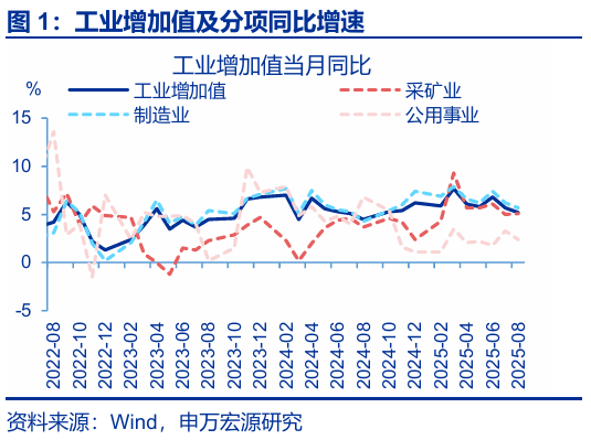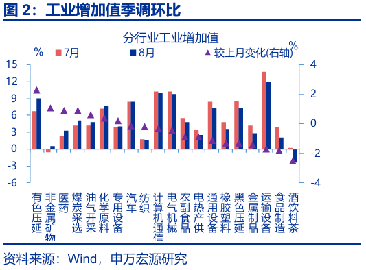 2、常規跟蹤:8月工業(yè)生產(chǎn)走弱,投資、消費均延續回落