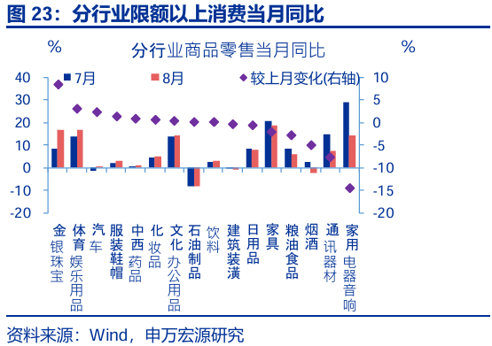 事件:8月,申萬(wàn)社零當月同比3.4%、宏源預期3.8%、月經(jīng)前值3.7%;固定資產(chǎn)投資累計同比0.5%、濟數據點(diǎn)預期1.3%、申萬(wàn)前值1.6%;房地產(chǎn)開(kāi)發(fā)投資累計同比-12.9%、宏源預期-12.4%、月經(jīng)前值-12%;新建商品房銷(xiāo)售面積累計同比-4.7%、濟數據點(diǎn)前值-4%;工業(yè)增加值當月同比5.2%、申萬(wàn)預期5.8%、宏源前值5.7%。月經(jīng)(來(lái)源:統計局)。濟數據點(diǎn)