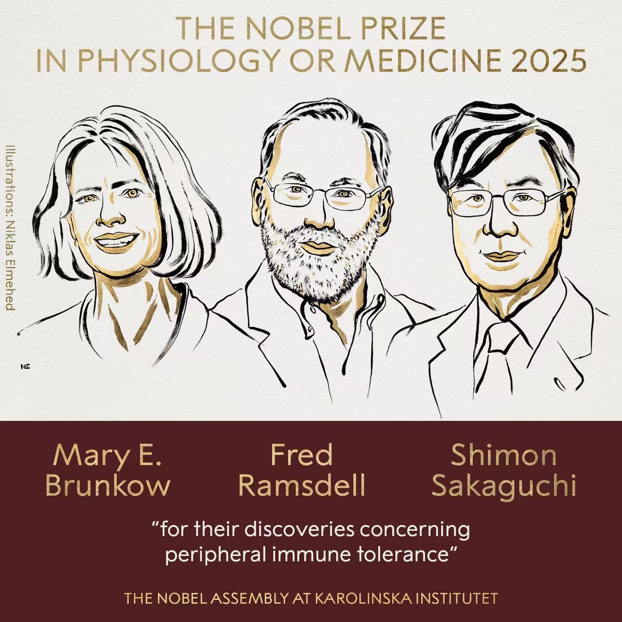 ▲瑪麗·E·布倫科、弗雷德·拉姆斯德?tīng)柡哇嗫谥疚腟himon Sakaguchi)。圖/諾貝爾獎委員會(huì )官網(wǎng)10月6日,一年一度備受矚目的諾貝爾獎如約開(kāi)獎,首個(gè)揭曉的依然是生理學(xué)或醫學(xué)獎。當天,瑞典卡羅