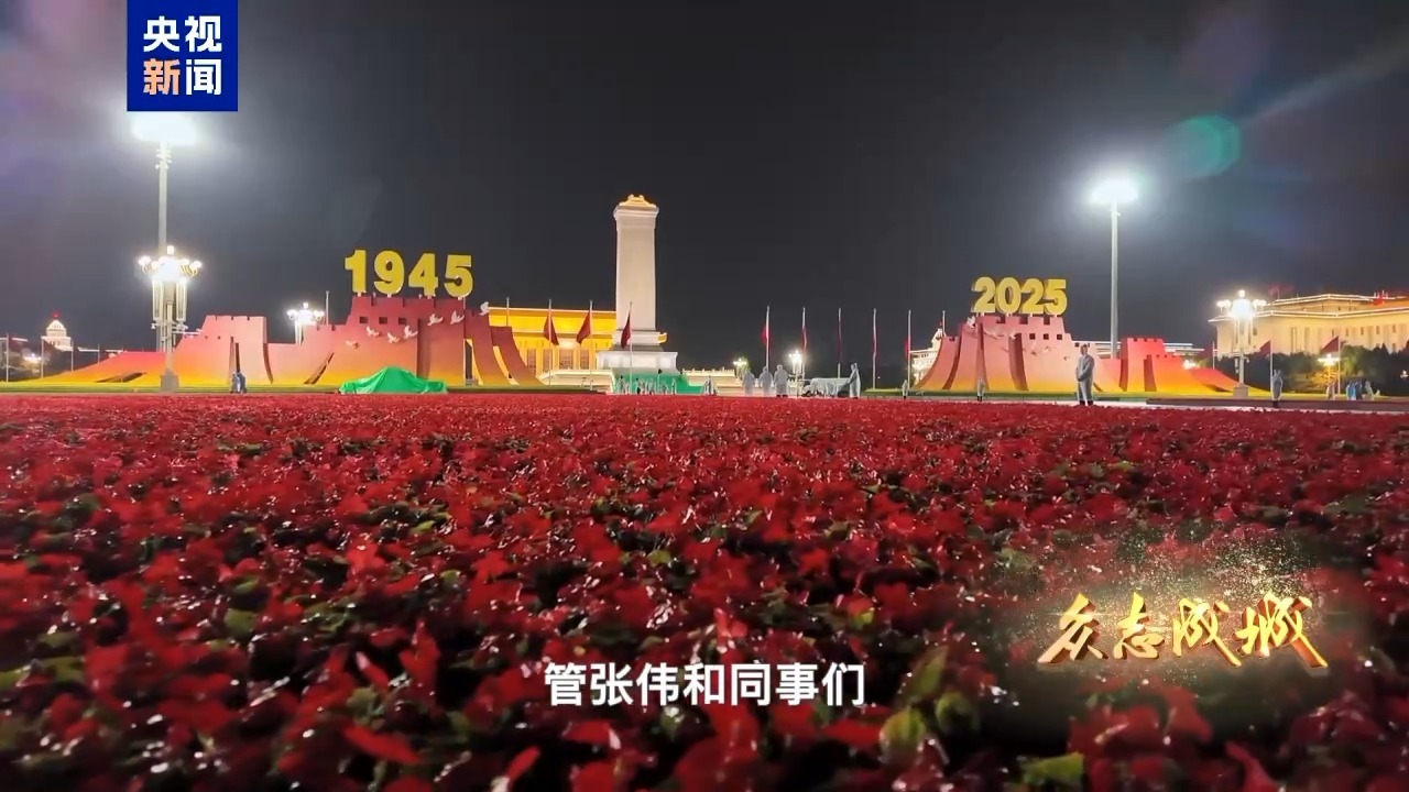 9月3日當天,管張偉和其他194名工友作為8900多名廣場(chǎng)設施建設施工人員代表,坐上了他們自己搭建的廣場(chǎng)觀(guān)禮臺,觀(guān)禮紀念大會(huì )和盛大閱兵式。