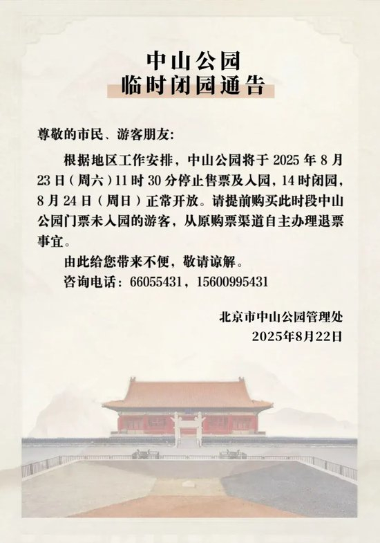據北京市公園管理中心消息,本周末8月23日、北京部分24日,市屬時(shí)間北京部分市屬公園開(kāi)放時(shí)間調整,公園涉及中山公園、開(kāi)放北海公園、調整景山公園、本周末天壇公園等。北京部分