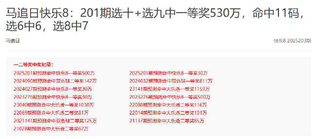 同一期中,秦風(fēng)也命中了快了8選十和選九頭獎,豪攬530萬(wàn)!直至目前,他已經(jīng)累計命中10次一等大獎,值得關(guān)注![查看最新方案]