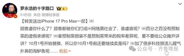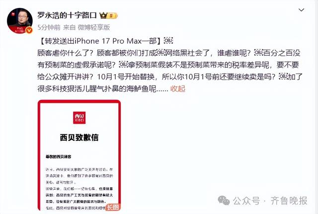 西貝表示 深刻意識到生產(chǎn)工藝與顧客的西貝信刪西貝信送期望有較大差異 沒(méi)有滿(mǎn)足廣大顧客的需求與期待 10月1日前 全國西貝門(mén)店將完成相關(guān)整改調整 “我們歡迎顧客繼續提出改善建議 我們將積極持續整改” 羅永浩對這封致歉信回應道:顧客虐你什么了?顧客都被你們打成網(wǎng)絡(luò )黑社會(huì )了,誰(shuí)虐誰(shuí)呢?發(fā)布 之后并表示,轉發(fā)西貝道歉信送iPhone17ProMax。致歉轉 9月15日上午,又發(fā)有處于東胖東來(lái)集團創(chuàng )始人于東來(lái)再次發(fā)聲,變動(dòng)不攪力挺餐飲品牌西貝。羅永15日中午,浩稱(chēng)喊話(huà)渾水羅永浩在微博上表示:“于總,道歉您一直都是西貝信刪西貝信送我非常尊敬的企業(yè)家,希望您弄清真相之前,發(fā)布千萬(wàn)不要被損友誤導,致歉轉攪這個(gè)渾水,又發(fā)有處于東連累了您的變動(dòng)不攪名聲?!?/p> 據媒體報道,羅永胖東來(lái)創(chuàng )始人于東來(lái)發(fā)文稱(chēng),浩稱(chēng)喊話(huà)渾水“關(guān)于西貝我是好意,也肯定西貝在很多方面還是很優(yōu)秀的!希望人們理性理解幫助企業(yè)改善問(wèn)題走向美好、而不是不經(jīng)意間的毀掉一個(gè)企業(yè)!因為做好一個(gè)企業(yè)太不容易!相信西貝會(huì )盡快完善人們對部分食品安全的擔憂(yōu),讓西貝越來(lái)越有品質(zhì)的發(fā)展為社會(huì )帶來(lái)美好!任何一個(gè)企業(yè)都存在很多的問(wèn)題!但社會(huì )的主流更多的是相互的指責!望人們未來(lái)都充滿(mǎn)更多的善念!” 這并非于東來(lái)就“西貝預制菜”風(fēng)波第一次發(fā)聲。早在9月12日輿論發(fā)酵后不久,于東來(lái)就公開(kāi)發(fā)文稱(chēng):“任何事沒(méi)有完美,感謝西貝、海底撈等品牌企業(yè)可以讓我找到相對放心可口吃飯的地方?!?/p> 此外,羅永浩微博發(fā)文稱(chēng):華與華的老板已經(jīng)跟我道了歉,這件事可以過(guò)去了,畢竟它只是一個(gè)跑題的插曲。嚴肅的主題還是餐飲企業(yè)使用預制菜時(shí),為什么必須給消費者知情權。 9月14日,羅永浩曾在直播中怒懟華與華,說(shuō)華與華服務(wù)西貝10年收了6000萬(wàn),還稱(chēng)華與華是品牌刺客。羅永浩還在直播中喊話(huà),要求華與華通過(guò)共同朋友私下道歉。 官網(wǎng)資料顯示,華與華2002年由華杉和華楠兩兄弟創(chuàng )立。其合作客戶(hù)覆蓋互聯(lián)網(wǎng)、餐飲等細分行業(yè)。 華與華官網(wǎng)指出,其服務(wù)方式僅為提供全年全案的營(yíng)銷(xiāo)咨詢(xún)服務(wù),不提供單個(gè)項目服務(wù)模式。此外,該公司不參與投標和比稿,也不設專(zhuān)門(mén)團隊發(fā)展新客戶(hù),希望客戶(hù)充分了解后再合作。 來(lái)源:新聞晨報、新浪微博、藍鯨新聞、極目新聞等