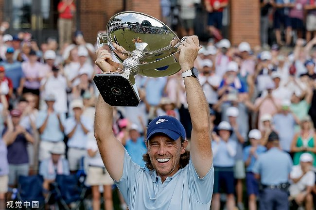 這場(chǎng)首勝為他帶來(lái)兩座獎杯:聯(lián)邦快遞杯水晶獎杯與巡回錦標賽"災難簡(jiǎn)"推桿復刻獎杯。