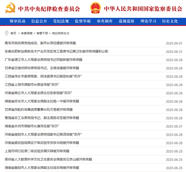 上周(2025年8月25日至8月31日),虎中央紀委國家監委網(wǎng)站受權發(fā)布信息,周人中紀21人被查,被查15人被處分。人被