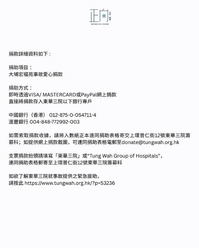 誠摯呼吁所有圈中友好與歌迷,將原定用于購買(mǎi)花籃的款項,轉捐至“東華三院”等本地募捐平臺作救災用途。
