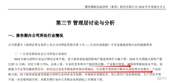 2024年,瑞爾競達扣非后歸母凈利潤呈現同比上升態(tài)勢,與同行可比公司的業(yè)績(jì)表現形成鮮明反差,同期中鋼洛耐、濮耐股份、北京利爾、瑞泰科技等其申報稿中披露的可比公司,扣非后歸母凈利潤均出現不同程度的同比下滑,這種“獨善其身”的業(yè)績(jì)表現。尤為關(guān)鍵的是,瑞爾競達所處的耐火材料行業(yè)在2024年面臨明顯的經(jīng)營(yíng)壓力。據濮耐股份2024年年報披露,2024年耐火材料行業(yè)運行情況總體平穩,受下游需求低迷的影響產(chǎn)量連續兩年小幅下滑,2024年全國耐火材料產(chǎn)量2,207.11萬(wàn)噸,同比下降 3.73%??傮w上看,行業(yè)經(jīng)營(yíng)形勢中產(chǎn)能持續過(guò)剩、產(chǎn)業(yè)集中度低、減排和智能制造水平低、創(chuàng )新能力不足等問(wèn)題依然存在,但經(jīng)過(guò)行業(yè)競爭篩選和環(huán)保治理淘汰,行業(yè)集中度持續不斷向頭部?jì)?yōu)勢企業(yè)集中。