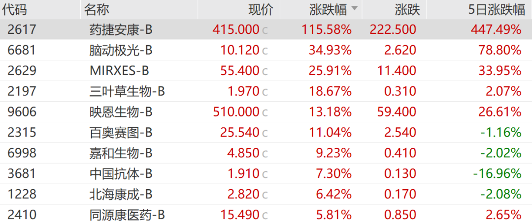 除藥捷安康外,多只18A板塊個(gè)股大漲,腦動(dòng)極光漲34.93%,MIRXES漲25.91%,三葉草生物漲18.67%,映恩生物漲13.18%,百奧賽圖漲11.04%。